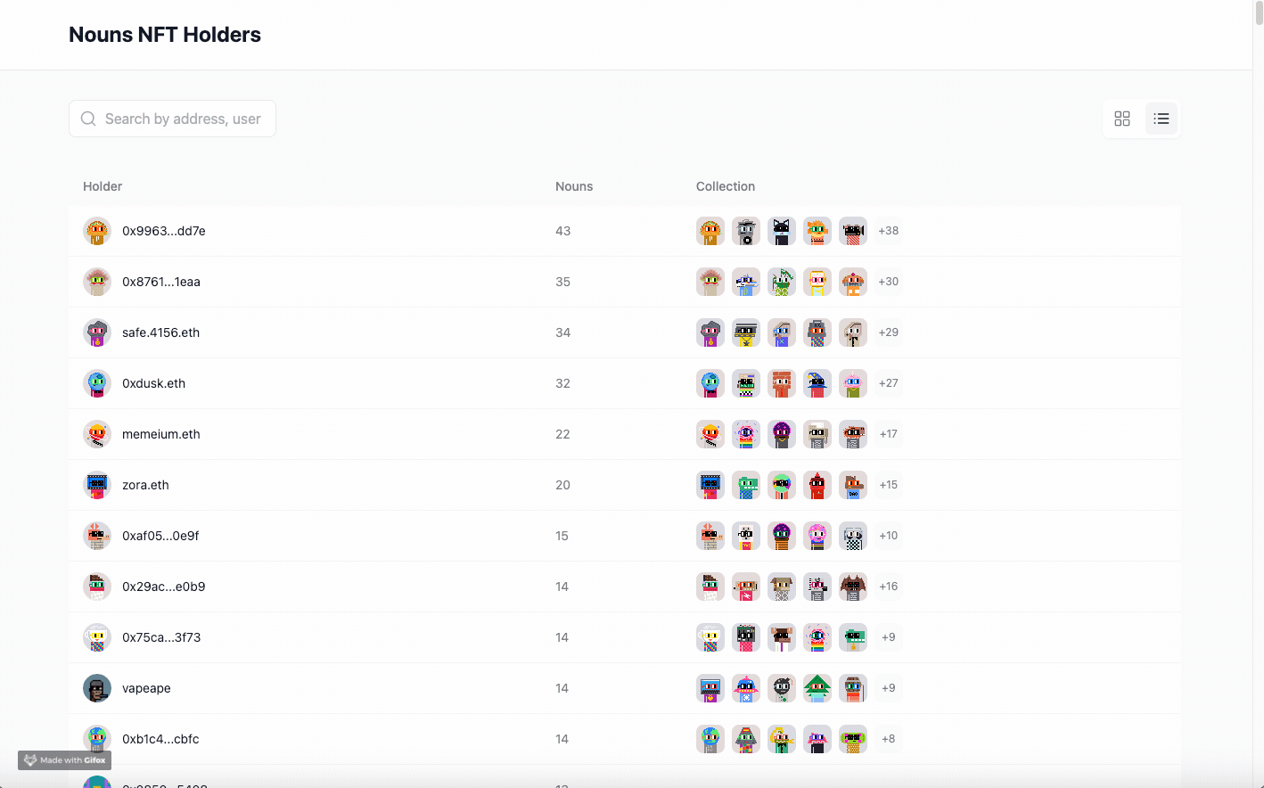 - The Members directory will feature all nouns holders/delegates, displaying their Nouns held/delegated and linking to their profile space.
