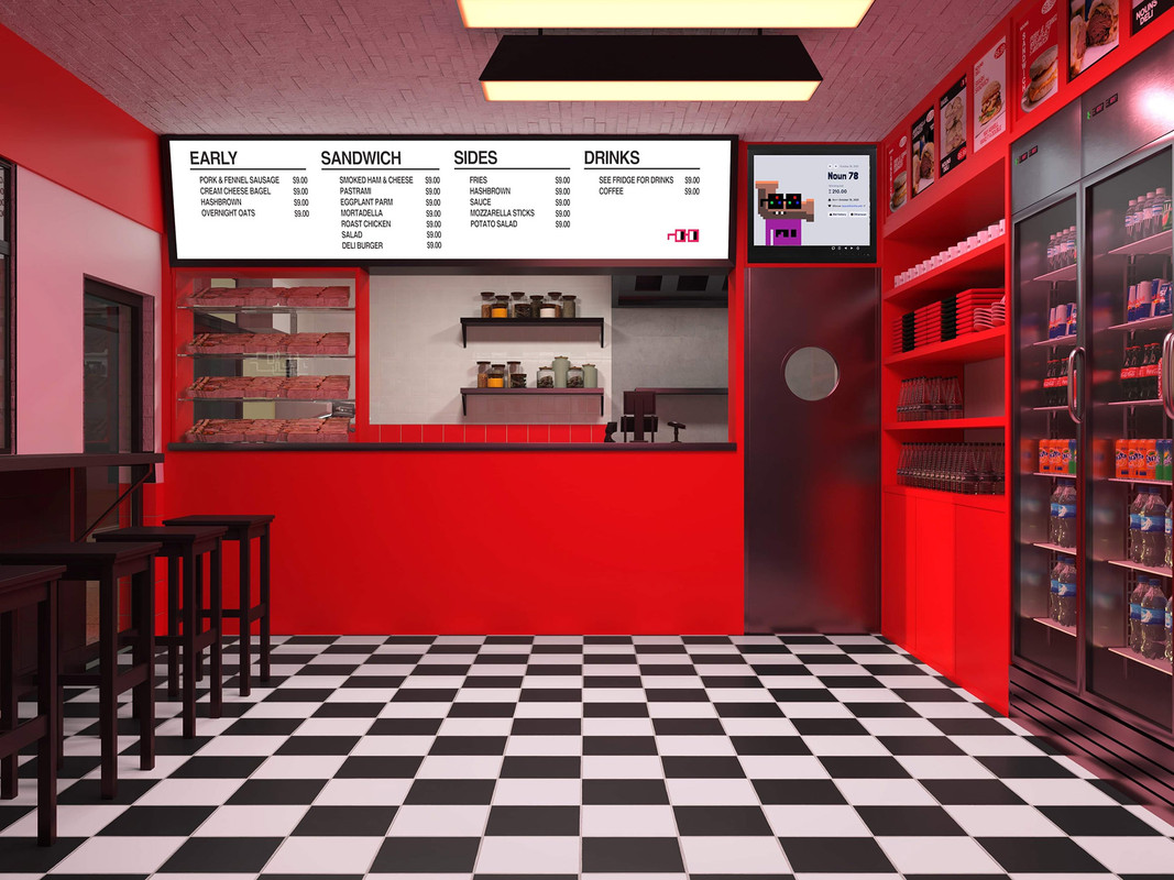 To make the venue truly Nounish, Stan’s Deli will need a full cosmetic facelift. The essential commercial equipment will remain, but significant changes to the design of the deli are needed to highlight the Noun brand. Our goal is to create a timeless sandwich shop model, incorporating the Nounish pixel art-focused design that can easily be replicated in different locations worldwide. Along with this timeless and replicable design, we want to incorporate custom neon Noggles and exterior murals designed by local artists to make each franchise unique to its location.