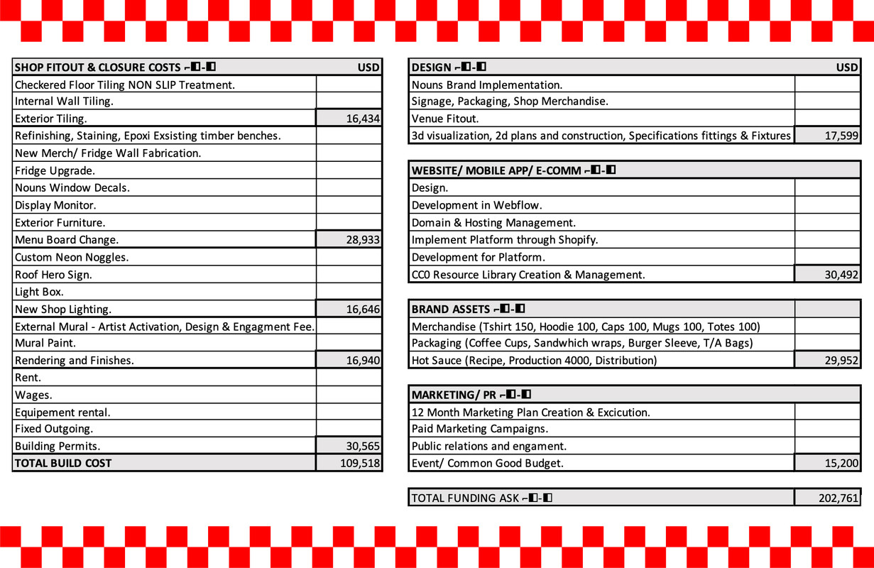 The rebranding fit-out will cause some time of closure and loss of revenue, we predict around 2 months until Nouns Deli can open its doors to the public. Having built a strong team over the past three years, we would like to hold on to the core members through this time. We intend to utilise this time to educate our team on all things Nouns, by reopening, our team will be able to guide our guests through the nouns ecosystem with ease.