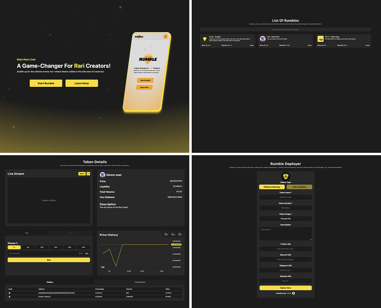 Supporting Rumble.exchange aligns with the Rari Foundation’s mission to foster decentralized innovation and community-led growth. By providing a platform for meme coin trading and NFT integration, Rumble.exchange increases the utility of $RARI while introducing novel use cases and strengthening ecosystem diversity.